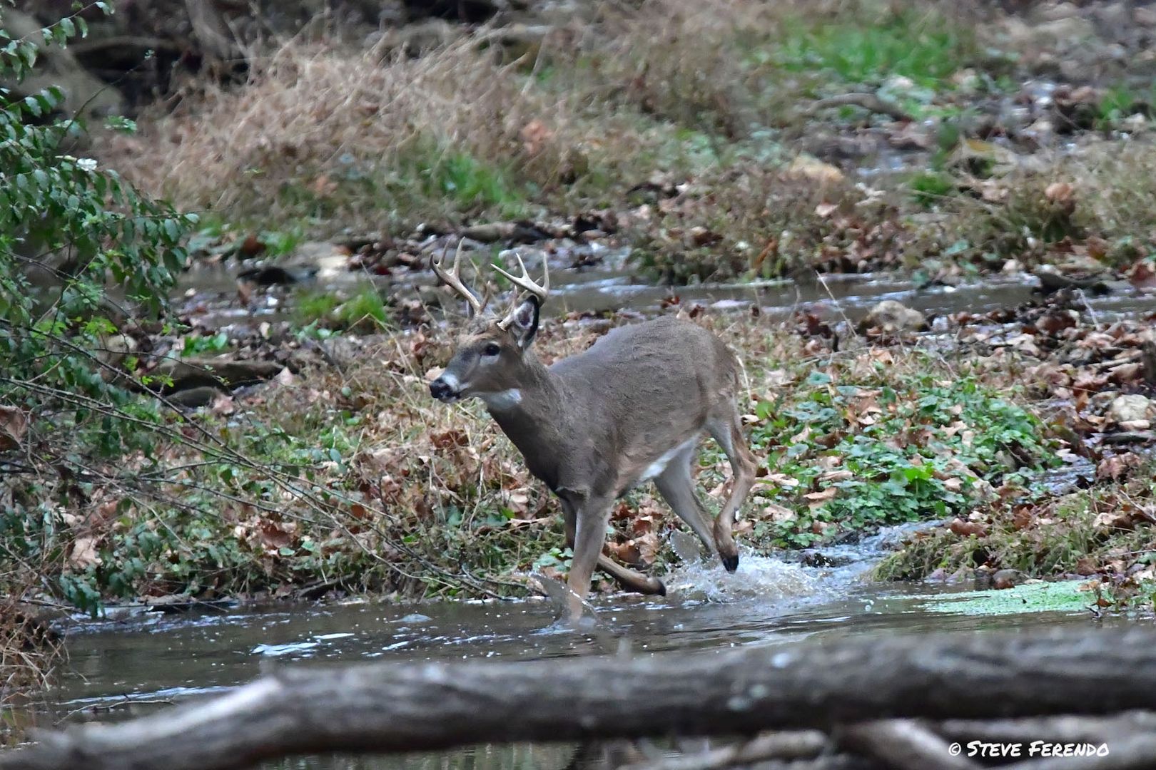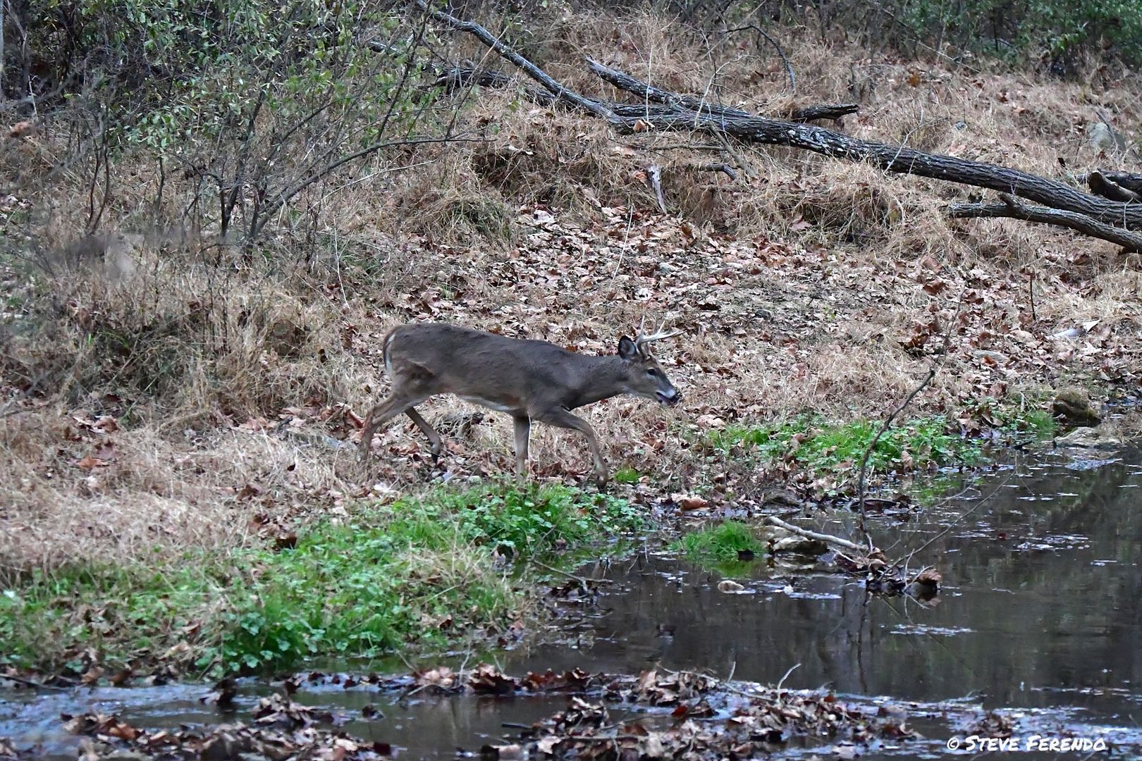 This time they did not reappear before it was too dark for decent photos. A young buck did come by to see what all the commotion was about...
