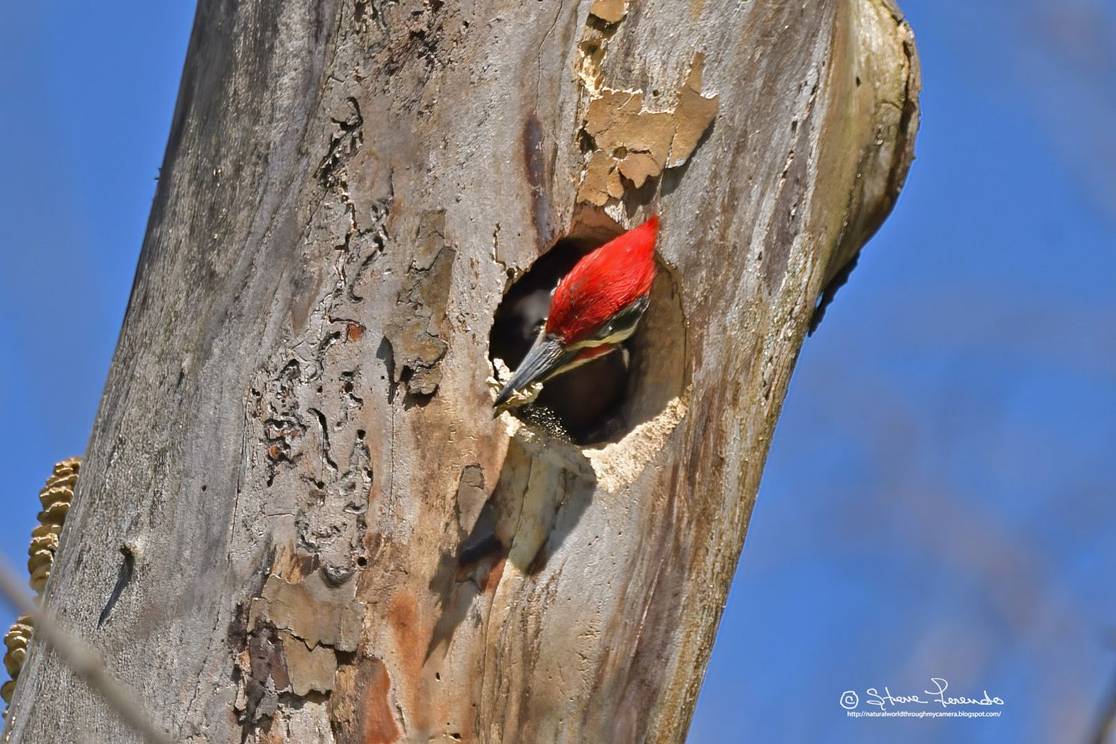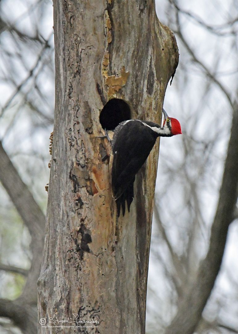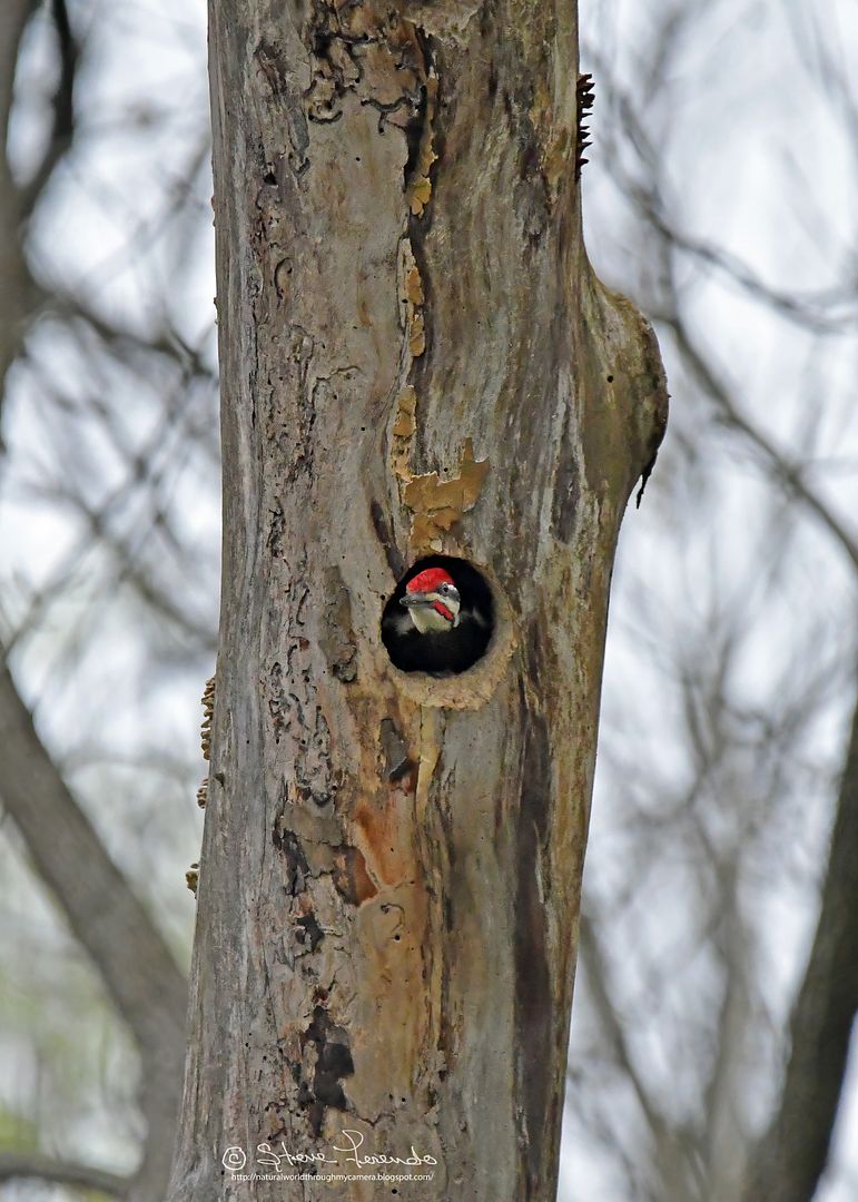 I was excited to discover a pileated woodpecker exploring the vacant cavities in a dead tree...