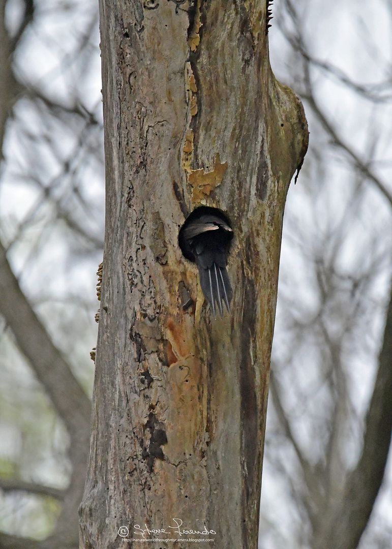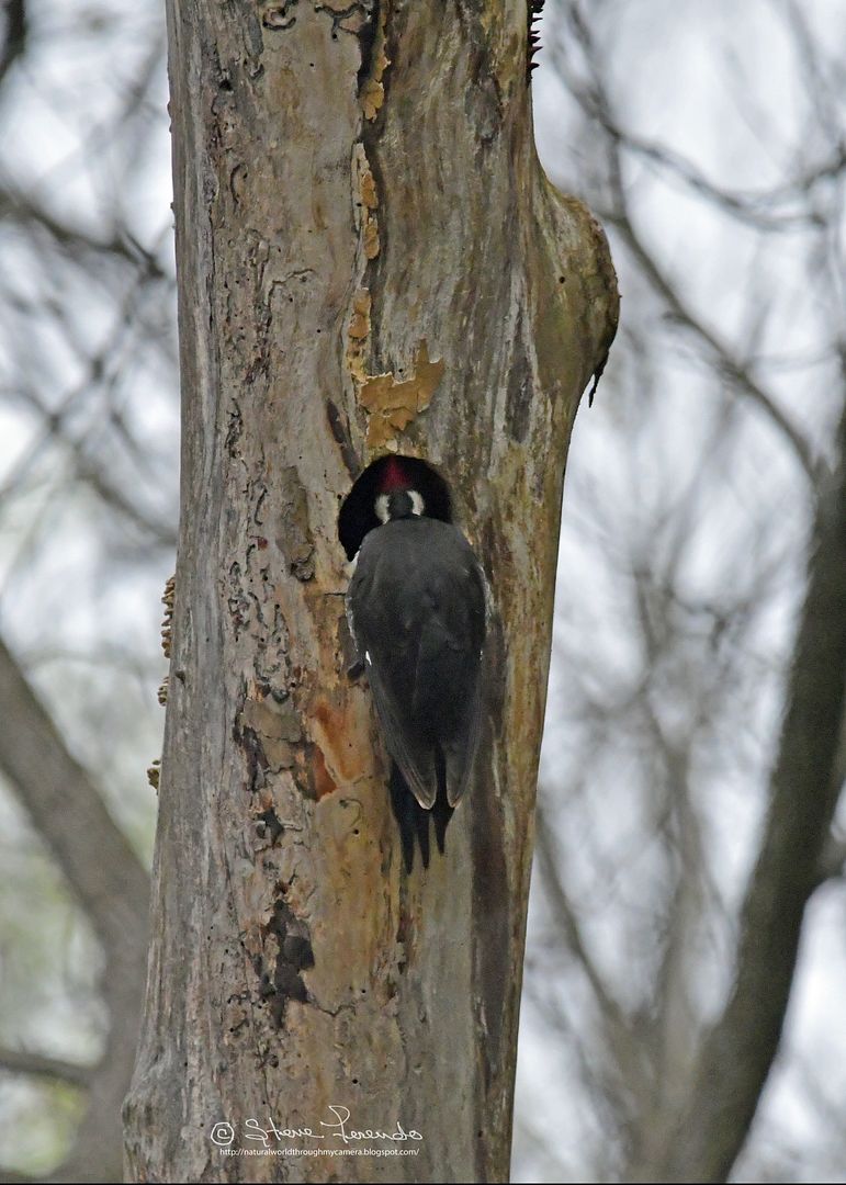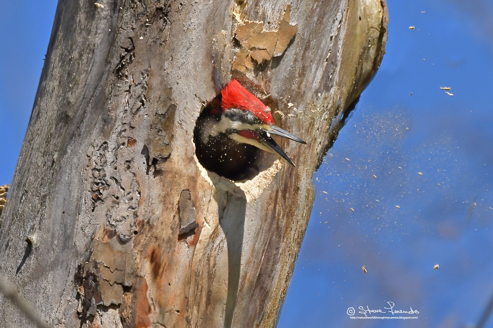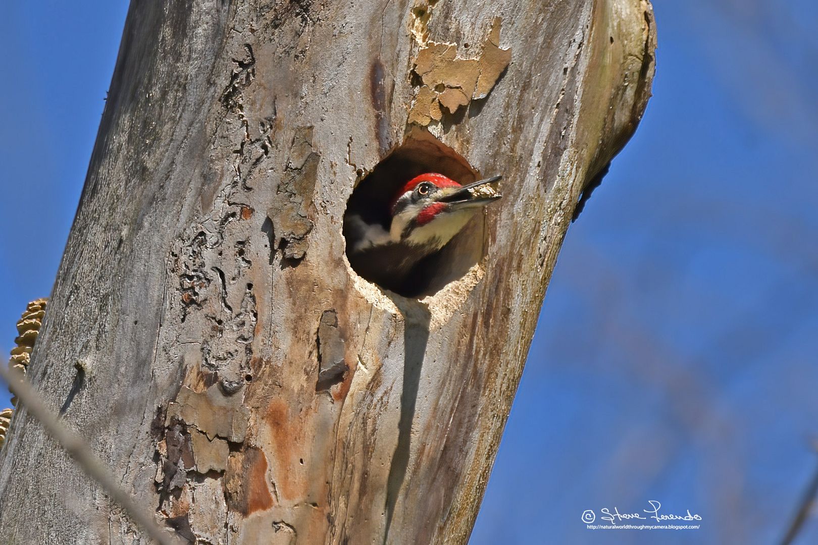 I was excited to discover a pileated woodpecker exploring the vacant cavities in a dead tree...